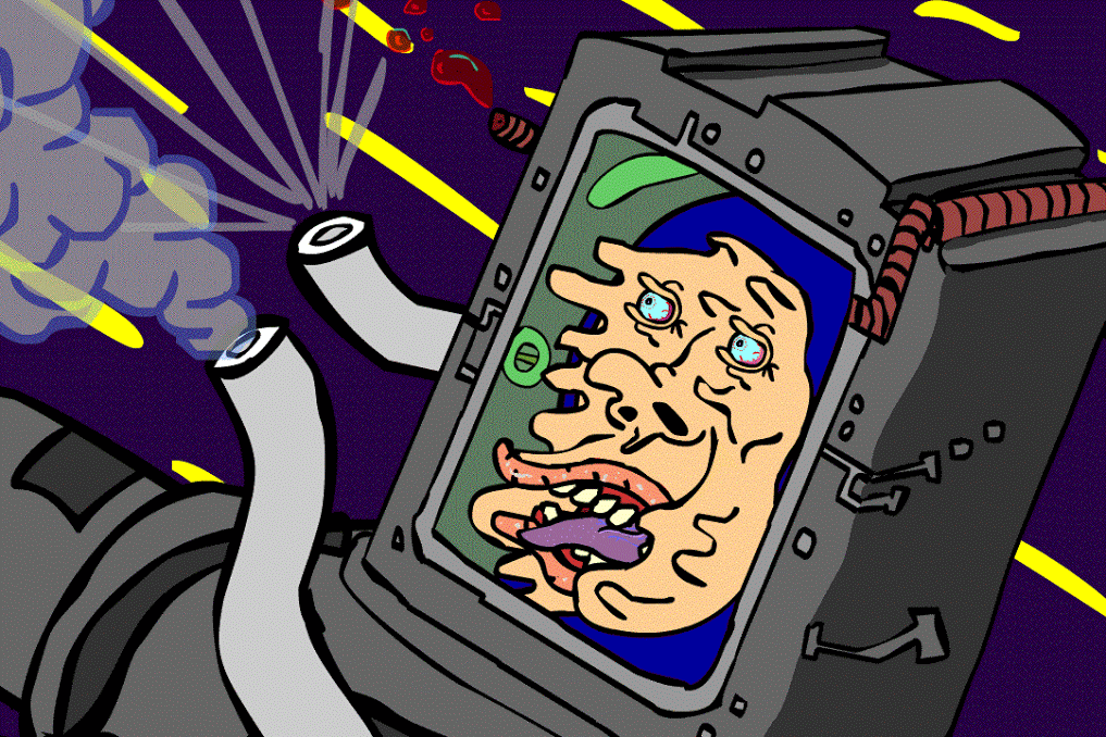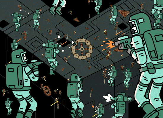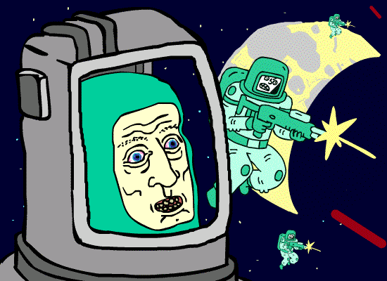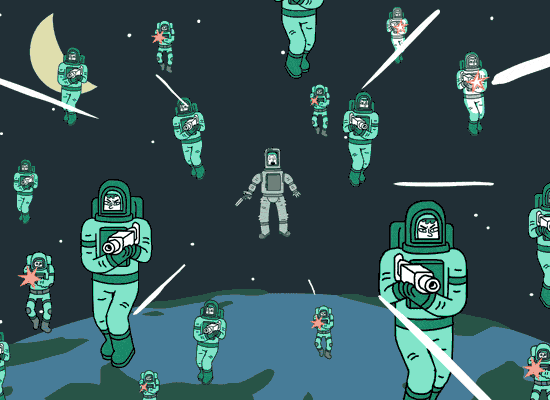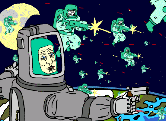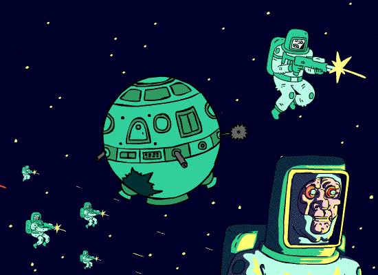 In the beginning of 2016 David Lauer and I created this improvised comic called SPACE CUBE MURDER CASINO. We would take turns animating one to three “comic panels” to progress the story, and then hand the panels off to the other without any discussion or agreed upon direction for the narrative. We only played eight turns.